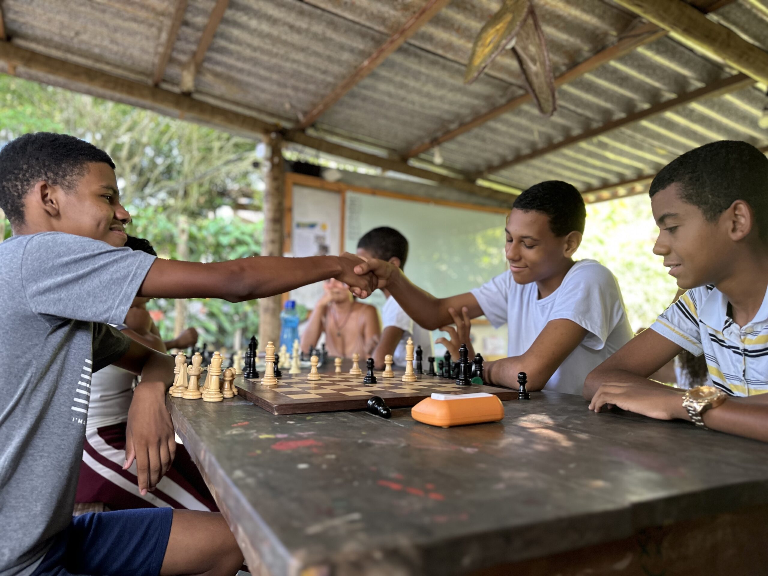 Known as “Associação de Xadrez da Etiv - AXÉ” (Etiv Chess Association), the chess club was founded to bring students together and, at the same time, help them improve: their academic achievements, such as in mathematics; strategic and analytical thinking; cognitive and social skills; as well as promoting civic behavior and affective attributes. Thus, contributing to reduce inequalities and promote social justice.