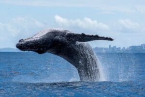 The humpback whale is a favorite of observers around the world, well-known for visiting areas close to the shoreline and exhibiting eye-catching behaviors, such as jumping out of the water and slapping the water with their tails. Whale-watching tourism in cities like Salvador, Bahia has gained a lot of popularity in recent years, especially now that the species has recovered back to abundant population levels.